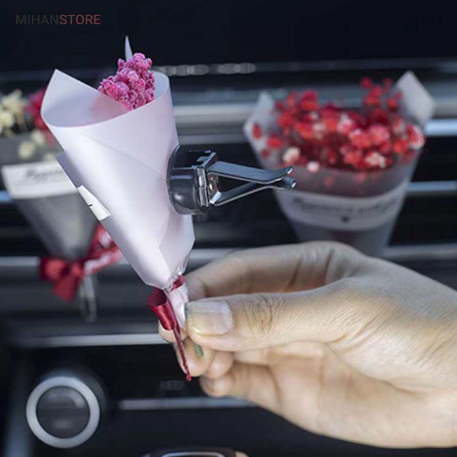 این خوشبو کننده از گلهای طبیعی ساخته شده و تنوع زیادی دارد و هر کدام زیبایی چشم نوازی دارند و به صورت رندوم ارسال میشوند تنها لازم است آنرا به دریچه کولر متصل نمایید اسانس را به خوشبو کننده بزنید تا همزمان با خروج جریان هوا از کولر، بویی خوش داخل خودروی شما متساعد شود. زیبایی و خاص بودن این دسته گل با گلهای طبیعی اش است که روی خوشبو کننده قرار دارد که باعث زیبایی و جذابیت خودرو شما میشود.